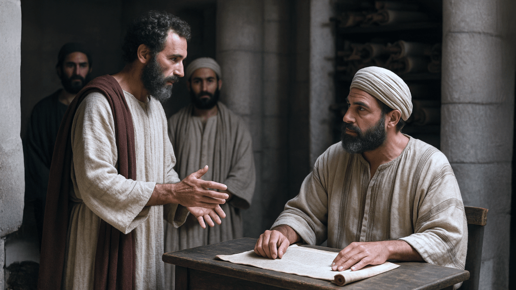 Τελικά πέρασαν 18 μήνες χωρίς πρόβλημα. Τότε, όμως ο μικροσκοπικός Εβραίος (Παύλος) οδηγείται από τους Ιουδαίους «ομοθυμαδόν» στο φόρουμ και το εντυπωσιακό δικαστικό βήμα τού ηγεμόνα ανθύπατου Ιούνιου Γαλλίωνα, αγαπημένου αδελφού του στωικού Σενέκα. Τη στιγμή, όμως, που «ανοίγει το στόμα ο Παύλος», καθώς για πρώτη φορά έχει την ευκαιρία στη ζωή του να στέκεται απέναντί του ένας τόσο λόγιος Ρωμαίος, εκείνος δηλώνει αναρμόδιος,: «Και τους έδιωξε από το δικαστήριο». Τότε δεν ήταν «οι Έλληνες, που έπιασαν το Σωσθένη τον αρχισυνάγωγο και τον χτυπούσαν μπροστά στο δικαστήριο» όπως μεταφράζει η Βιβλική Εταιρία (ακολουθώντας το εκκλησιαστικό Κείμενο), με τον «ευγενικό» Γαλλίωνα αδιάφορο να παρακολουθεί το «θέαμα». Τάσσομαι υπέρ τής άποψης (Σ. Δεσπότης, «Η ιεραποστολική Περιοδεία του Παύλου στον Ελλαδικό χώρο (Μακεδονία – Αχαΐα – Ασία. Αθήνα: Ουρανός 2010 σ.198-9), επί τη βάσει των αρχαιότερων χειρογράφων, ότι ξεσπά «εμφύλιος» στην ίδια την ιουδαϊκή Κοινότητα που πριν είχε συσπειρωθεί ομοθυμαδόν εναντίον του Ευαγγελίου. Με αυτή τη σκηνή ο γιατρός Λουκάς θέλει να μας δείξει ότι το κακό είναι απόλυτα αυτοκαταστροφικό και οδηγεί αυτούς που εκτοξεύουν μομφές στην αμοιβαία απώλειά τους.